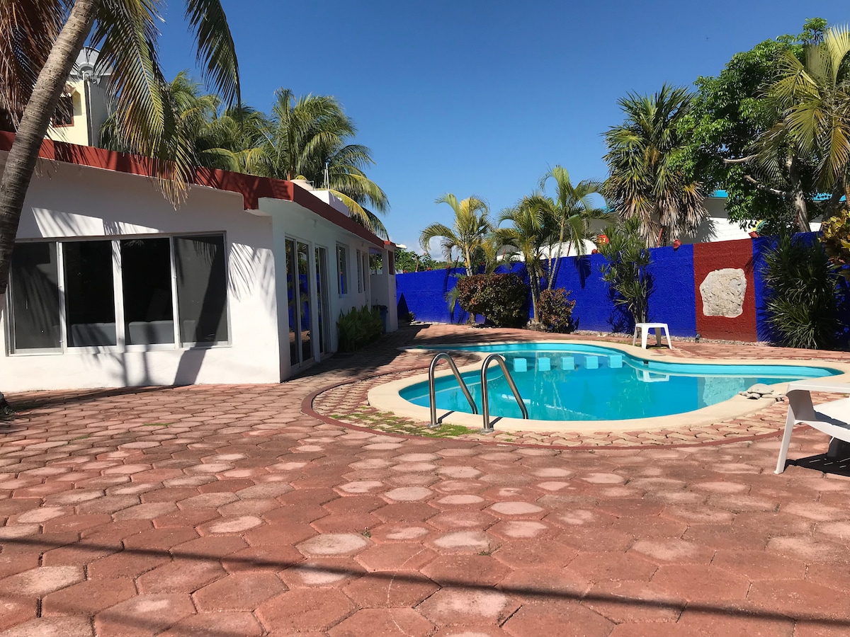 호텔 구역에 위치한 전용 해변이 딸린 아름다운 멕시코 스타일의 숙소입니다. 숙소에는 침실 3개와 욕실 2.5개가 있으며, 시설이 완비되어 있고(세탁실, 주방, 스노클링 액세서리) 위치가 정말 좋습니다. 근처에 쇼핑몰과 식료품점이 있습니다.