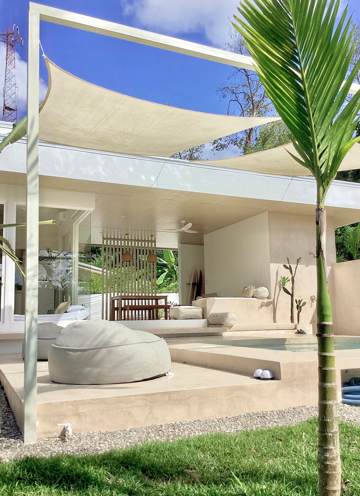 Modern villa in the center of Pavones with private access and a pool with an outdoor shower and a garden. Outdoor living room with a sitting and dining area. Spacious bedroom with a king-size bed and a closet for surfing equipment. Full bathroom. Kitchen-living room equipped with two convertible futon sofas, a smart TV, air conditioning, and high-speed Wi-Fi. Located right next to the famous Pavones wave. It has two entrances: to the parking lot and a more direct to the beach/river.