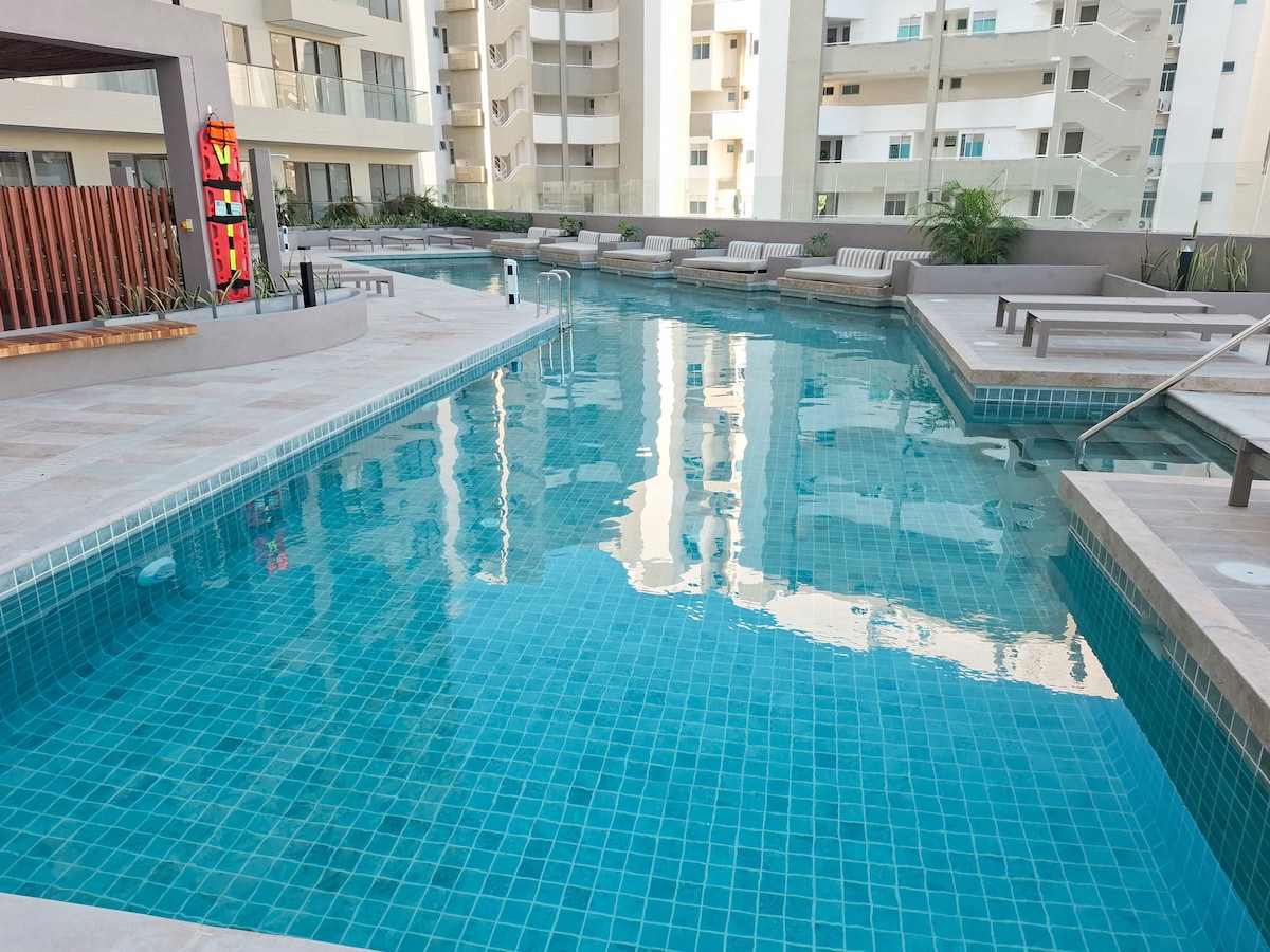 산타마르타의 *가구가 완비된 현대적인 스위트*로 살게로 해변에서 도보로 가까운 거리에 있으며 도시에서 가장 인기 있는 관광지 중 하나인 엘 로다데로와도 가깝습니다. ✨ 하이라이트: 옥상 수영장, 자쿠지, 사우나, 터키식 목욕탕, 게임룸 및 헬스장. 더 보기 ⬇️. 건물에는 방문객을 위한 무료 주차장이 있으며 상황에 따라 달라질 수 있습니다. 스위트룸에서는 산 전망을 감상할 수 있습니다. 휴식을 취하거나 탐험을 즐기고 싶으신가요? 이 스위트는 산타마르타에서 즐거운 시간을 보내기에 완벽한 장소입니다.