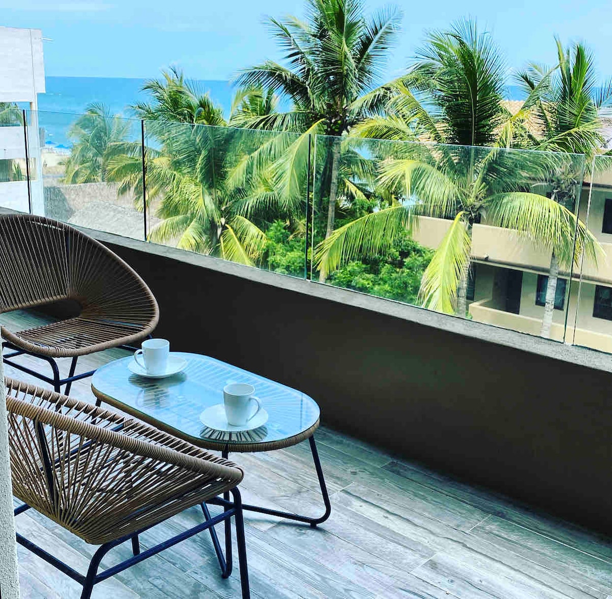전용 발코니가 있는 비치프론트 콘도. 위치!