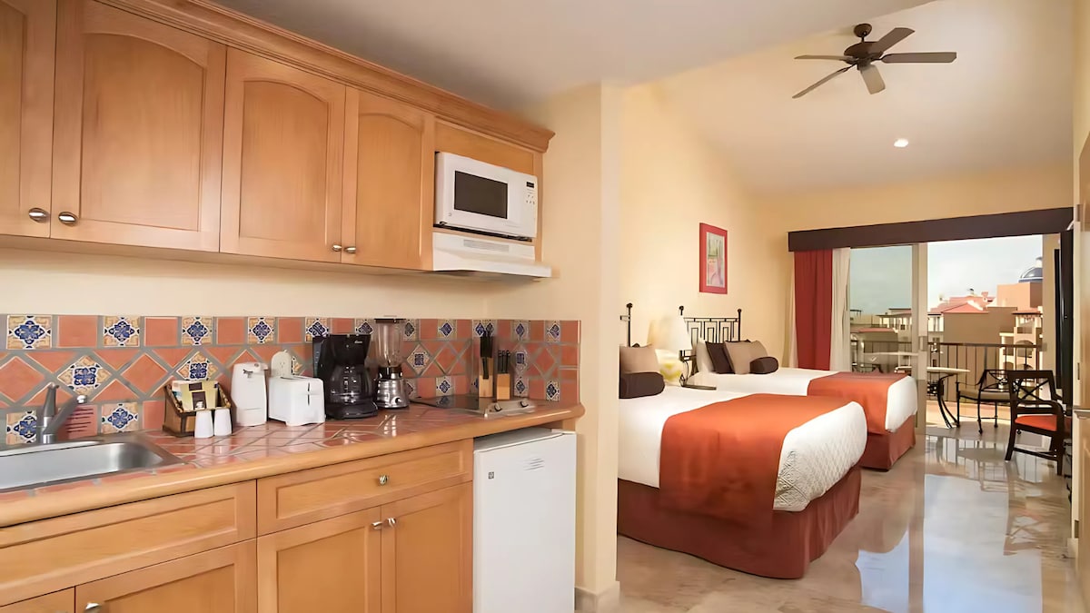 - 침실 1개 욕실 1개 콘도! - 호텔의 베케이션 클럽 쪽에 위치한 주니어 스위트(수영장 포함) & 스윔업 바 & 온수 욕조 -예약은 토요일부터 토요일까지입니다. 가격 늦게 도착하거나 일찍 체크아웃하더라도 동일합니다. (타임셰어 정책). - 부분 주방에는 식기세척기, 전기 스토브, 전자레인지, 커피메이커, 토스터, 블렌더, 요리 및 서빙을 위한 기구. - 클럽 회원을 위한 무료 와이파이 -무료 주차 - 중심부에 위치 - 수영장 난방 = 행복한 아이들!