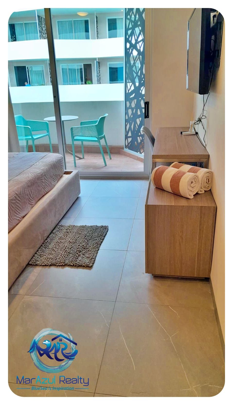 Escape to paradise in this stunning new 1-bedroom condo in the heart of Playa del Carmen. Featuring a king-size bed, full kitchen, spacious living area with pull-out sofa, and a modern bathroom with a soaking tub, this space offers the perfect mix of comfort and style. Enjoy exclusive access to the rooftop infinity pool, Jacuzzi, gym, and bar—just minutes from the beach and lively 5th Avenue. Ideal for a relaxing, luxurious stay in the Riviera Maya.