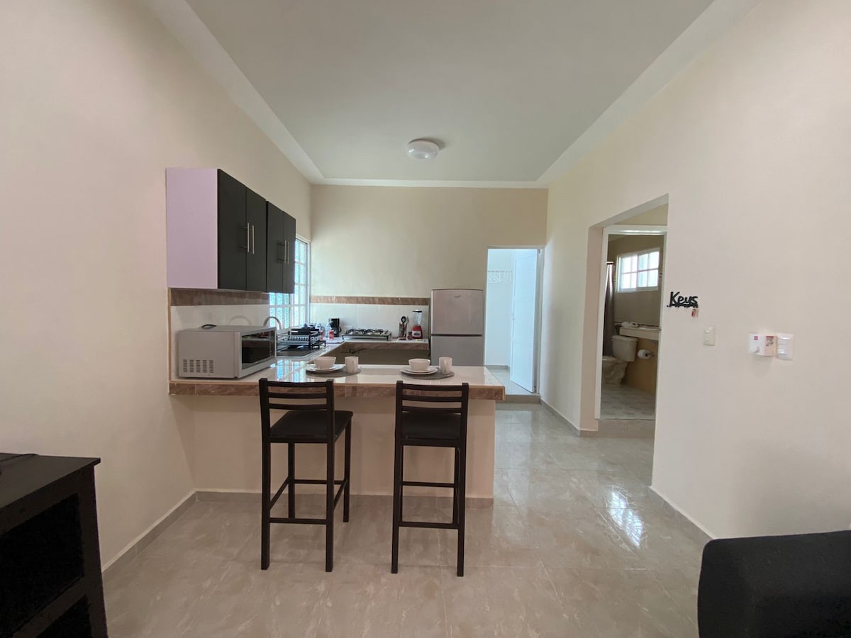 레지덴시아 아트 프로젝트에 오신 것을 환영합니다! 해변에서 몇 걸음 거리에 있으며 38번가와 5번가의 최고의 레스토랑과 상점에서 몇 걸음 거리에 있는 숙소를 찾고 계신다면, 최대 5명까지 수용할 수 있는 이 아파트는 여러분과 가족 또는 친구에게 안성맞춤입니다. 플라야델카르멘에서 가장 중심적이고 독점적인 개발 중 한 곳에서 독특하고 편안한 경험을 즐기며 예술와 건축물로 둘러싸여 보세요. 최선을 다해 맞이해 드리겠습니다. 지금 예약하세요! 집처럼 편안하게 지내실 수 있을 것입니다.