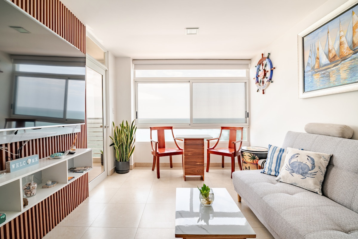 바다 앞 집 공간을 즐겨보세요. 바닷가의 10층에 위치한 우아하고 넓은 숙소로 최대 8명까지 편안하게 수용할 수 있으며, 가족과 함께 아름다운 날을 보내거나, 친구들과 함께 휴식을 취하거나, 커플로 함께 시간을 보내거나, 도시의 소음에서 벗어나 별을 보며 휴식을 취하기에 탁월한 장소입니다. 🌟 항상 24시간 경비원과 해변에서 보안 요원이 보호하며 건물 출입 카드로 엘리베이터를 이용하여 프라이버시를 보호합니다.