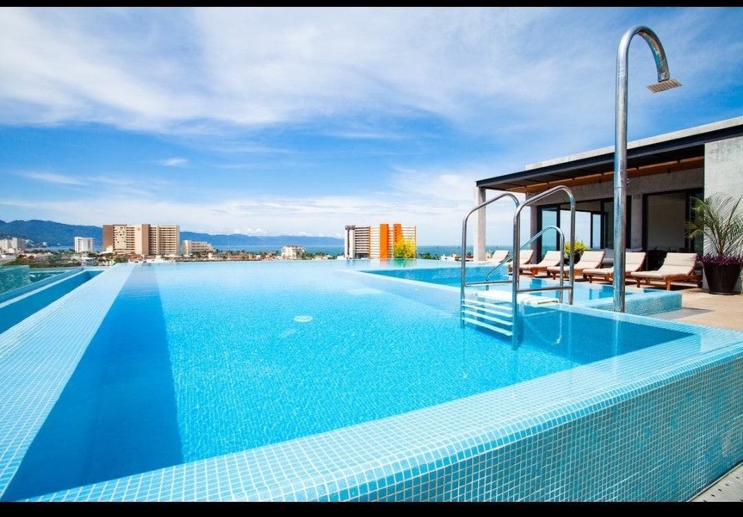 푸에르토바야르타의 인피니티 풀 전망을 갖춘 넓은 콘도