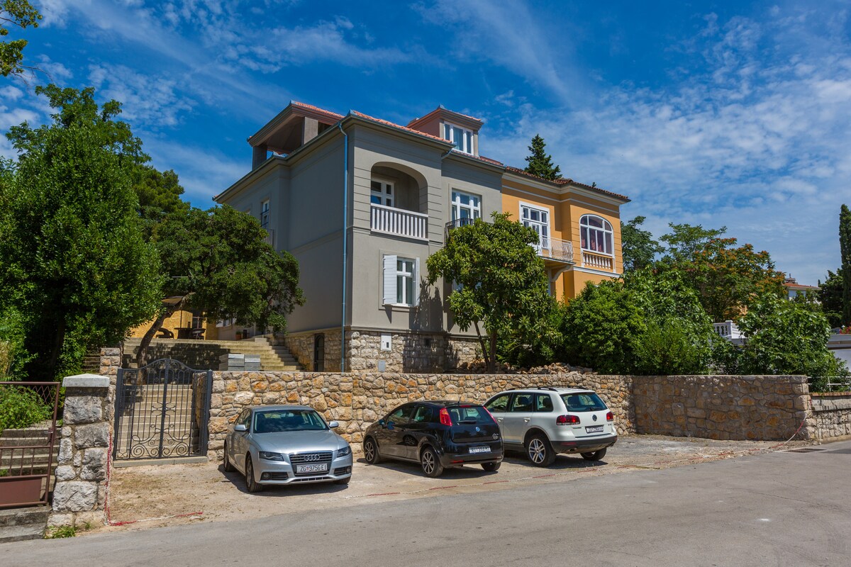Villa Mimi offers family friendly accommodation, with two spacious apartments located in northern Adriatic region. “Non-clubbers” area, suitable for a relaxing holiday. Apartments are 150 m from the beach. View of the Adriatic sea and Island of Krk.