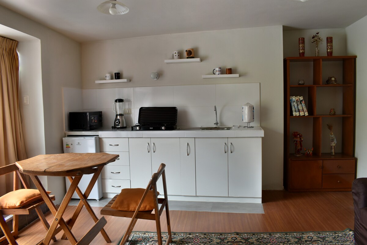 Disfruta de una estadía cómoda y auténtica en este mini departamento privado ideal para 1 o 2 personas, ubicado en una zona tradicional del Centro Histórico de Cusco. El alojamiento cuenta con cocina privada y equipada, baño privado con agua caliente, una habitación con cama de 2 plazas y salida a patio, además de una vista panorámica a toda la ciudad, ideal para relajarte al final del día. Rodeado de comercios, restaurantes y tiendas de conveniencia, todo a corta distancia caminando.