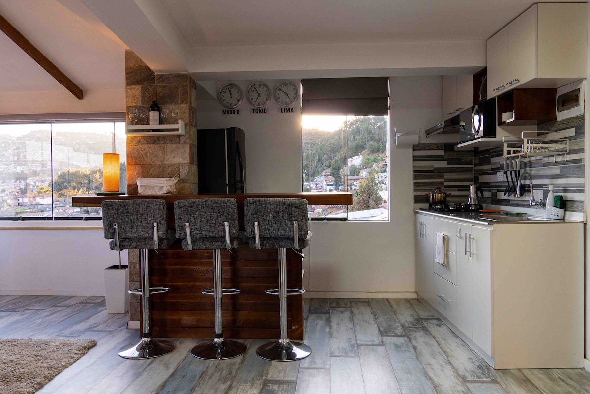 쿠스코의 역사적인 중심지에서 도보로 단 10분 거리에 있는 세련된 아파트에 오신 것을 환영합니다. 거실에서 멋진 도시 전경을 감상하세요. 단단한 나무 바닥과 깔끔한 인테리어가 따뜻한 분위기를 연출합니다. 건물 아래에 있는 셀프 체크인과 슈퍼마켓을 통해 간단하고 즐거운 숙박이 될 것입니다. 이 아파트는 1인 여행자, '디지털 노마드', 커플에게 이상적입니다. 안전하고 조용한 동네에서 현지인처럼 살아보세요!