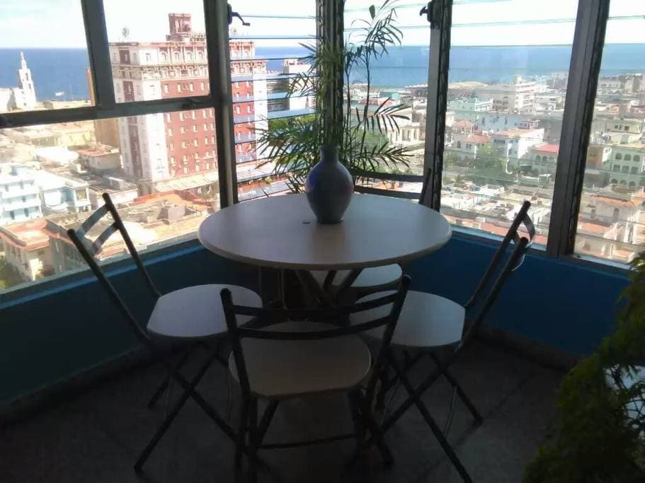 Nuestro apartamento es completamente independiente para los clientes, muy ventilado e iluminado a todo momento y desde las 3 habitaciones y la terraza, debido a su altura cuenta con una maravillosa vista al mar y a la ciudad de La Habana, la terraza sin duda es un lugar increíble para desayunar y ver el atardecer disfrutando un buen café cubano, la decoración es una mezcla entre lo clásico del pasado y algunos toques de modernismo de estos tiempos..
