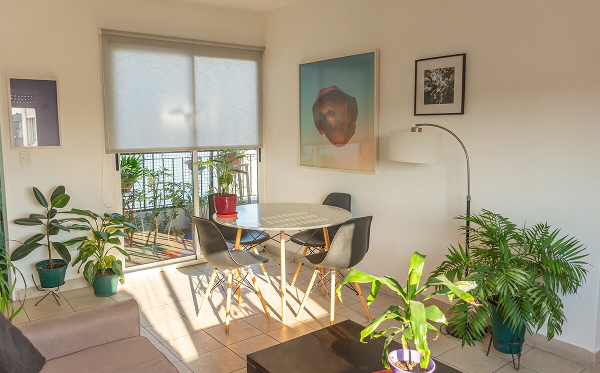 산텔모 중심지와 가까운 역사적인 파사제 산타마리나에 위치하고 있으며, 계단을 올라가면 도착할 수 있습니다. 벽난로와 통합 주방이 있는 거실, 침실 2개(1개는 개방형 중이층에 책상이 있음), LCD TV(크롬캐스트 있음, 케이블 없음)가 있는 엔터테인먼트 센터, 욕실(샤워 부스 있음, 욕조 없음), 워크인 옷장이 있습니다. 와이파이 연결 및 중앙 에어컨 시스템을 갖추고 있습니다. 매우 조용하고 밝습니다. 부에노스아이레스 관광지까지 쉽게 이동할 수 있습니다.
