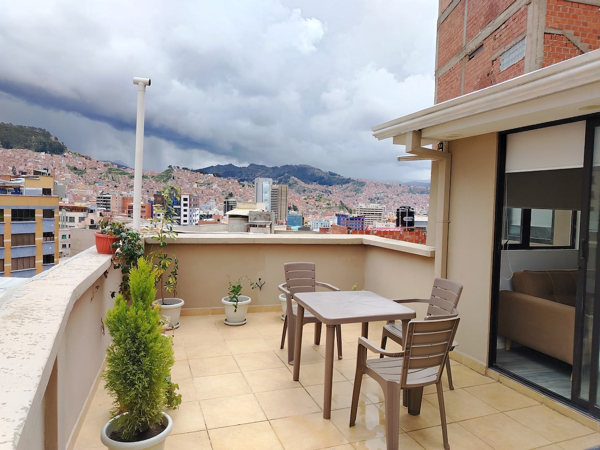Moderno Depto. en Sopocachi en terraza con mirador