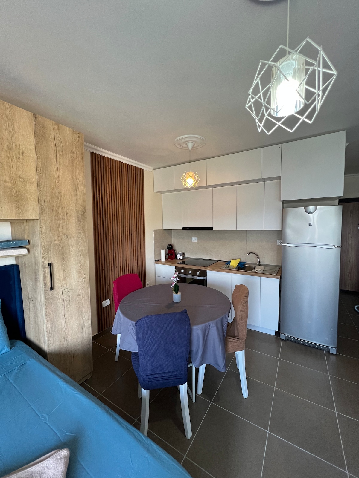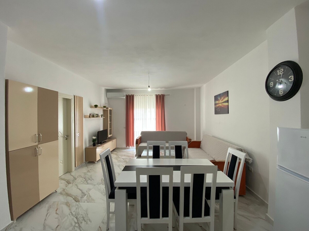 두레스에 위치한 우아한✨ 휴양지인 ✨문차일드 스위트에 오신 것을 환영합니다! 일리리아 해변에 위치하고 있으며 바다에서 불과 50미터 거리에 있고 상징적인 호텔 아드리아틱에서 도보로 가까운 거리에 있는 이 세련되고 완비된 아파트는 편안한 해안 휴양지로 이상적입니다. 편안함과 스타일을 염두에 두고 설계된 이 숙소는 밝고 현대적인 인테리어, 넓은 전용 발코니, 완벽한 숙박에 필요한 모든 것을 갖추고 있습니다. 바다에서 휴식을 취하거나 탐험하거나 일하고 싶은 커플, 가족 또는 원격 근무자에게 적합합니다.