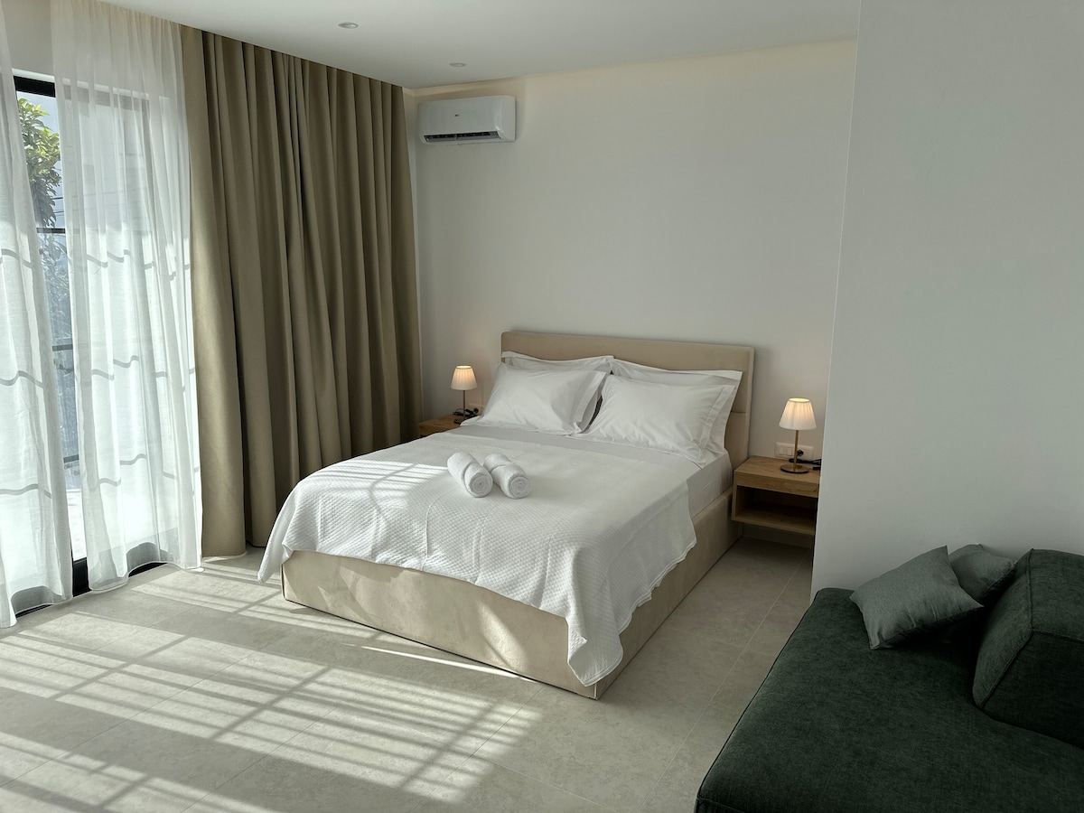 Rizes Sea View Suite는 커플에게 적합한 독특한 신축 숙소입니다. 올리브 나무와 녹색으로 둘러싸인 그림 같은 언덕에 자리잡고 있습니다. 스위트의 면적은 38평방미터이며, 아름다운 바다 전망과 이국적인 현대적인 디자인을 제공합니다. 인피니티 풀에서 휴식을 취하고, 좋아하는 와인이나 샴페인을 완전히 마셔보세요. 뛰어난 분위기와 프라이버시가 어우러진 멋진 전망은 잊지 못할 순간과 소중한 추억을 선사할 것입니다.