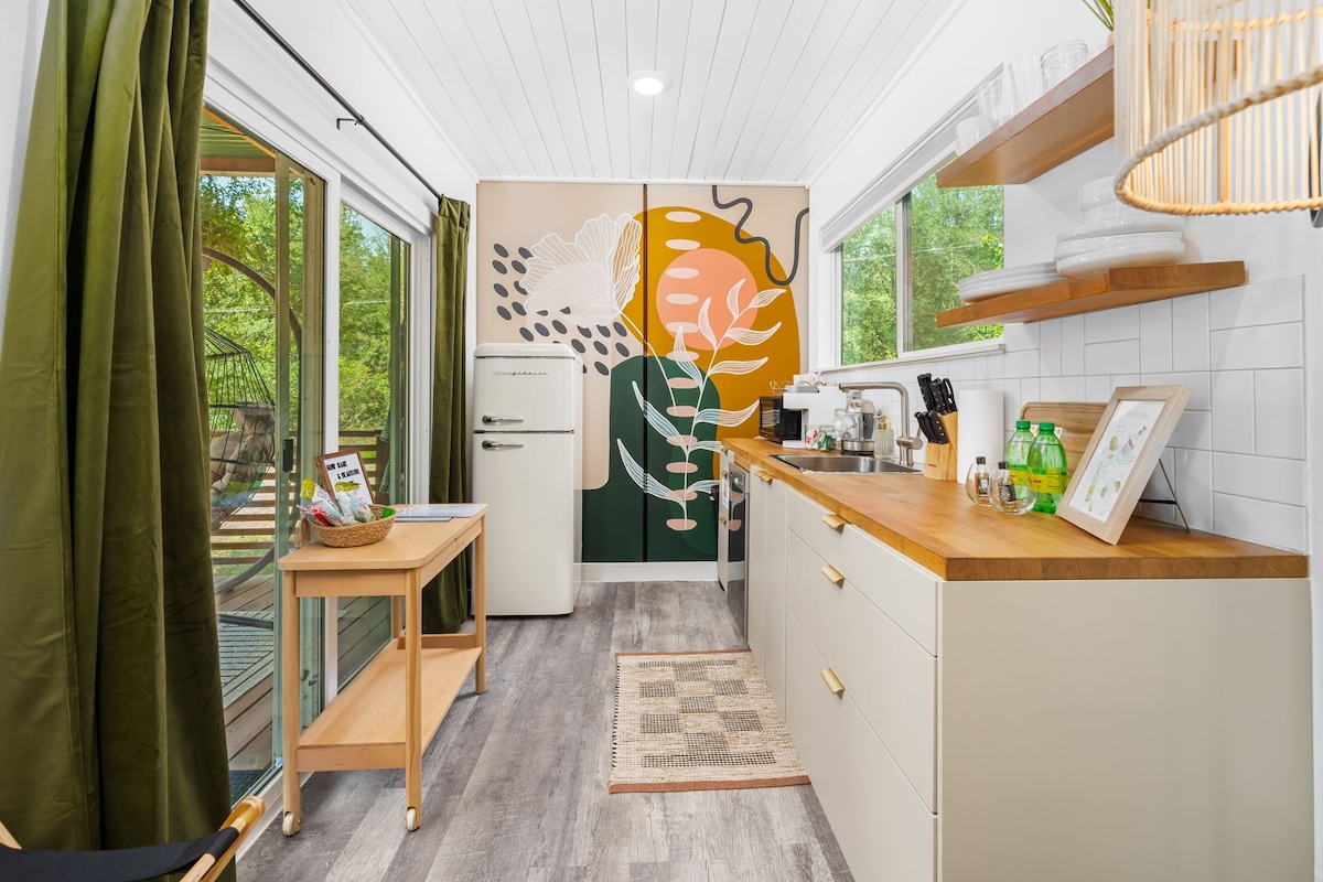 ๋์ฌ ์ ๊ฐ์ธ ์ค์์์คโ์ค์คํด์ ์๋์ง์ ํํ๋ก์ด ๊ณ ๋ ์ด ๋ง๋๋ ๋ฉ์ง ์์ ์ด ๊ฐ๋ํ ์ปจํ ์ด๋ ์ฃผํ์ ๋๋ค. ๋์ ๋ฐํฌ์ ์๋ ๊ณ๋ ์์์ ์์ ํด์์ ์ทจํ๊ฑฐ๋, ํ ์ฌ์ค ๋ณ๋น ์๋ ์๋ก ์คํ ๋ธ ํ๋ ์ฃผ๋ณ์ ๋ชจ์ฌ๋ณด์ธ์. ์ค์คํด ์ํฐ์คํธ ๋ ์ด์ฒผ ์ค๋ฏธ์ค์ ์ค๋ฆฌ์ง๋ ๋ฒฝํ ์์์ ์ผ์ธ ์์ฌ๋ฅผ ์ฆ๊ฒจ๋ณด์ธ์. ๋์ฌ์์ ๋ถ๊ณผ ๋ช ๋ถ ๊ฑฐ๋ฆฌ์ ์์ง๋ง ๋๋ฌด๋ก ๋๋ฌ์ธ์ฌ ์์ต๋๋ค. ํน์ฌ์ด์ฆ ์นจ๋, ์๋น๋ ์ฃผ๋ฐฉ, ์ผ์ธ ๊ทธ๋ฆด ๋ฐ ์๋ํ ๊ฑฐ์ค ๊ณต๊ฐ์ด ํน์ง์ ๋๋ค. ๋ก๋งจํฑํ ํด๊ฐ, ์คํ ์ด์ผ์ด์ ๋ฐ ์์ ์ถ์ ์ฃผ๋ง์ ์์ฑ๋ง์ถค์ ๋๋ค.