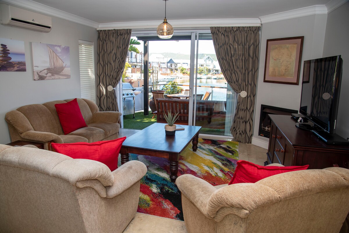 나이스나 헤즈 (Knysna Heads) 를 통해 석호와 바다의 멋진 전망을 감상할 수 있는 침실 2개, 반려동물 친화적인 전용 플랫이 완비되어 있습니다. 조용하고 안전한 막다른 골목에 위치하고 있으며, 주방이 완비되어 있어 집처럼 편안한 진정한 집입니다. 가족이 노는 동안 여전히 일해야 하는 사람들을 위한 전망이 있는 작고 별도의 사무실. 침대는 4인용이며, 필요한 경우 라운지의 수면 소파에 2개가 있습니다. 워터프론트와 마을까지 쉽게 걸어서 갈 수 있는 거리. 차량 1대를 위한 안전한 덮개 아래 주차장.