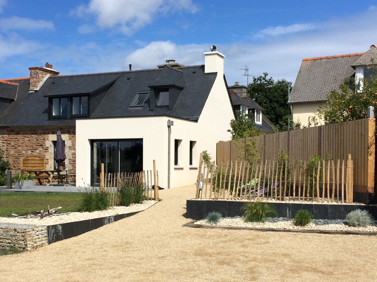 Paimpolκ³Ό BrΓ©hat μ¬μ΄μ λ°λ€λ₯Ό λ§μ£Όν μλ¦λ€μ΄ μ§