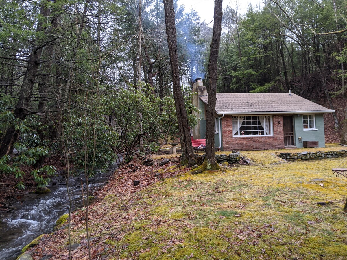 The ideal getaway for anyone seeking privacy in a beautiful, nature-filled setting. The steep gravel driveway leads you away from the street and into the woods to the Bee Hollow Cabin, set on over 6 acres of land. Optimal for a weekend of relaxation, hang out on the wrap-around deck overlooking the babbling brook, or cozy up by the fireplace.