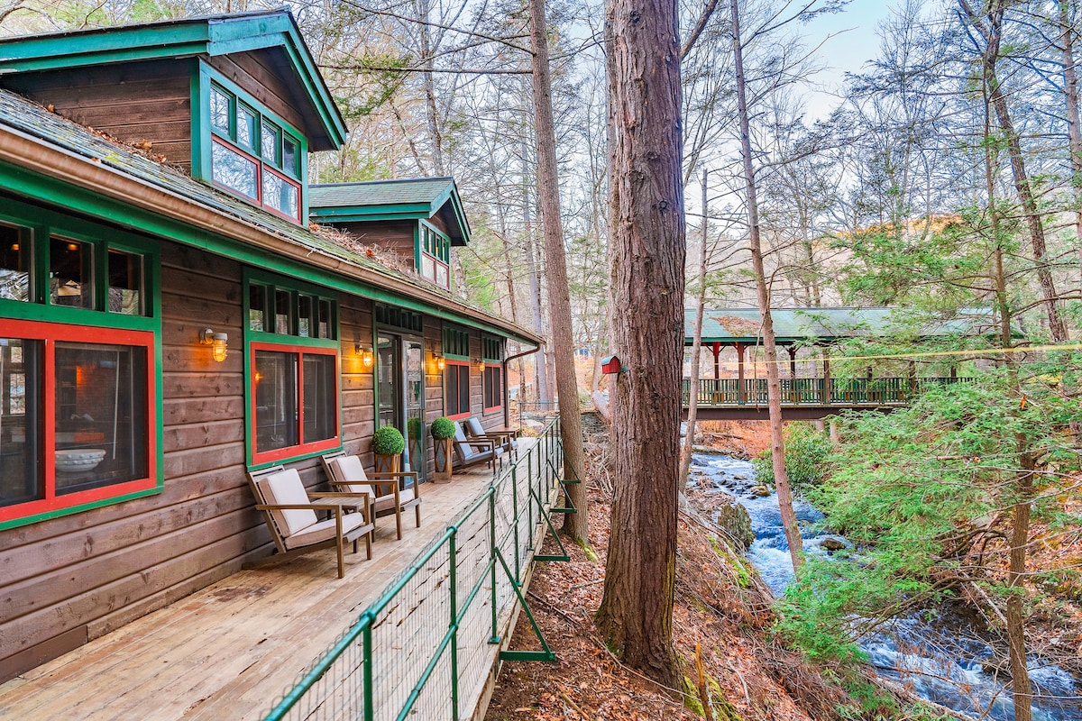 Romantic Creekside Lodge with Private Hot Tub