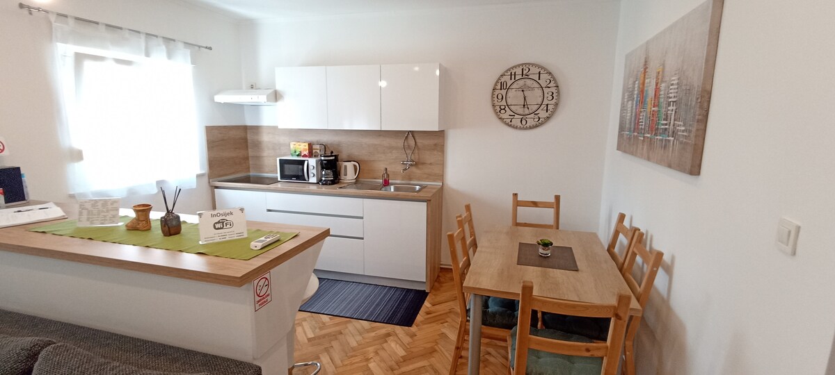 이 독특한 숙소는 독특한 스타일로 꾸며져 있습니다. 이 아파트는 오시예크 중심부에 위치하고 있으며, 1층에 위치하고 있으며 새롭게 단장되었습니다. 거실, 주방, 침실 1개, 욕실로 구성되어 있습니다. 이 아파트는 완비되어 있고, 에어컨이 설치되어 있으며, 무료 와이파이 인터넷을 제공합니다. 아파트 내에는 지하 차고에 무료 주차장이 있으며, 아파트에서 50m 거리에 있습니다. 이 주차장은 아파트를 예약할 때 임대인에게 예약해야 합니다.