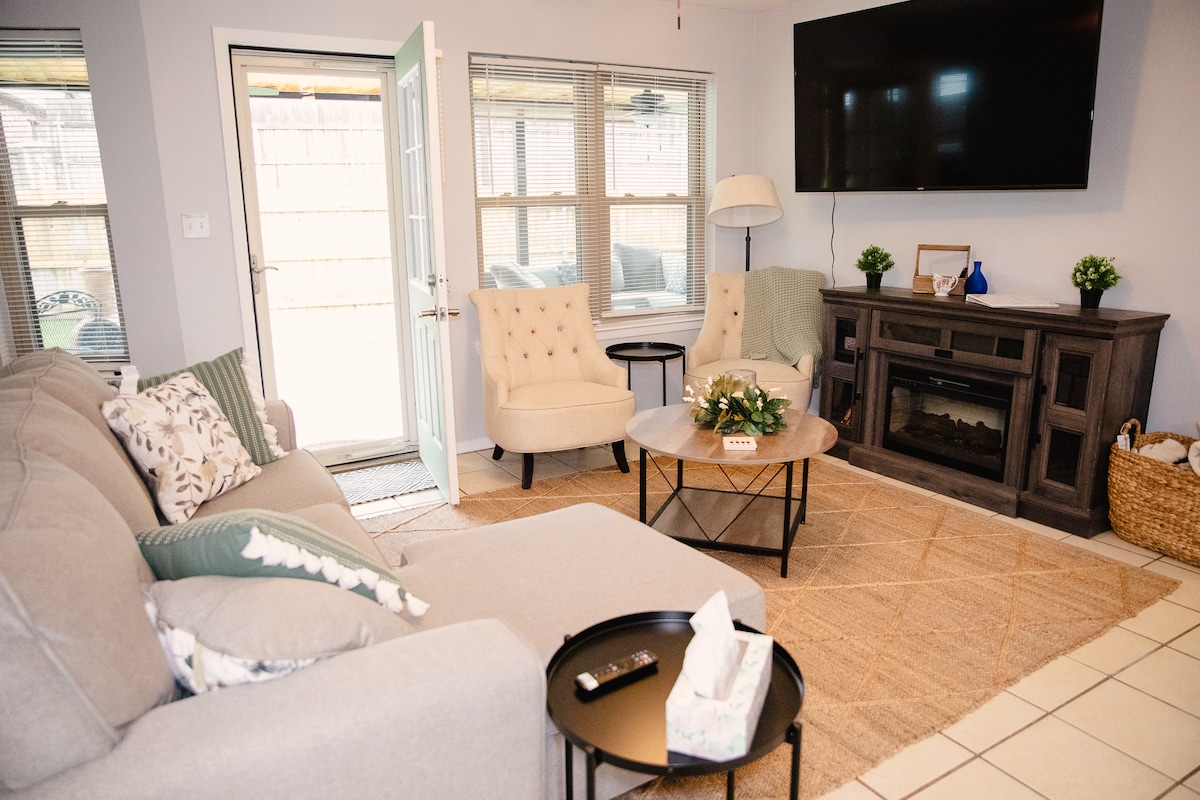 아늑한 휴양지에 오신 것을 환영합니다. 이 독특한 작은 집은 공간을 극대화하면서도 큰 매력을 제공하도록 세심하게 디자인되었습니다. 고대 참나무와 피칸 나무 사이에 자리 잡은 이곳은 휴식을 취하고 긴장을 풀 수 있는 완벽한 개인 휴양지입니다. 평화로운 자연으로 둘러싸인 넓은 현관에서 아침 커피나 저녁 산들바람을 즐겨보세요. 내부에는 집처럼 느껴지는 따뜻하고 안락한 분위기에서 필요한 모든 것을 찾을 수 있습니다. 🚫 모든 종류의 금연, 미등록 게스트 금지, 반려동물 동반 불가.