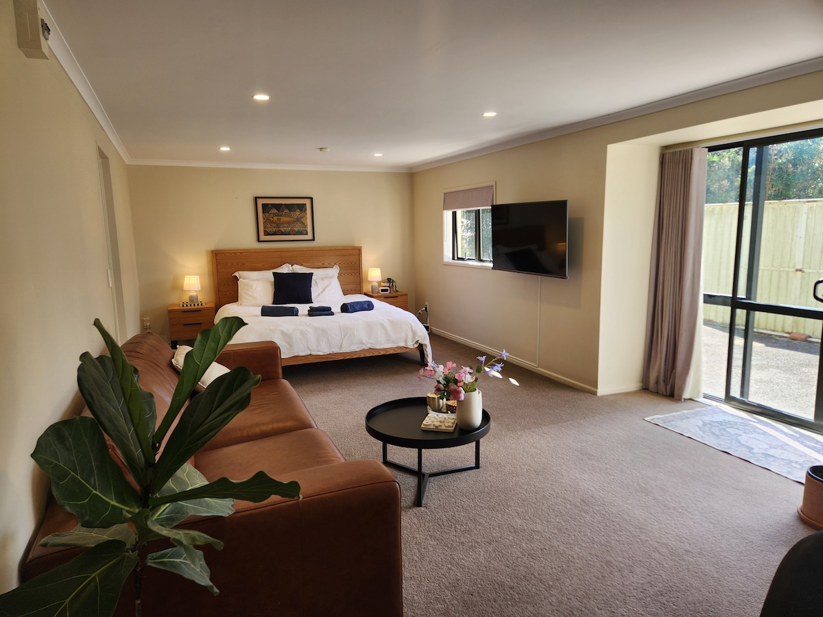 저희 숙소의 일부인 이 전용 윙에는 침실 2개, 편안한 라운지, 전용 현대식 욕실, 휴식을 취할 수 있는 넓은 정원이 마련되어 있습니다. 전자레인지, 냉장고, 주전자 등이 구비된 간이 주방이 있지만 완비된 주방은 아닙니다. 저희는 훌륭한 대중교통 옵션을 갖추고 해변에서 가까운 오클랜드의 편안한 친절한 교외인 포인트 셰발리에에 있습니다.