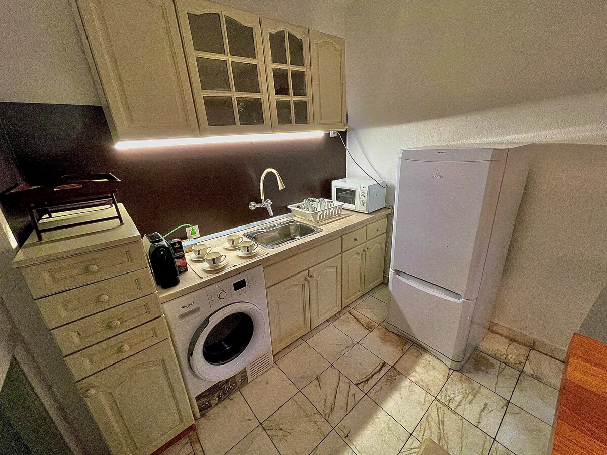 산단스키 중심부에 위치한 아늑한 아파트로, 메인 보행자 거리에서 불과 50미터 거리에 있습니다. 공원, 레스토랑, 관광지 근처에 있는 조용하고 평화로운 장소. 집은 여름에는 시원하고 겨울에는 따뜻합니다. 이 아파트에는 에어컨, 주방, 세탁기, 냉장고 등 필요한 모든 것이 갖춰져 있습니다. 내부는 편안하고 집처럼 편안합니다. 창문 아래에 공용 유료 주차장이 있습니다. 휴식과 휴양에 이상적입니다. 여러분을 기다리고 있습니다!