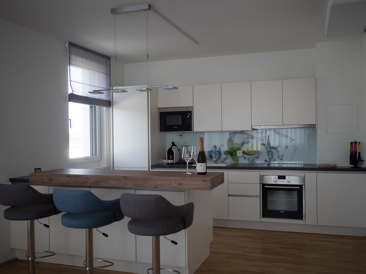 영어: 도시 생활이지만 편안하게 즐기고 싶으신가요? 넷스트에 오신 것을 환영합니다. 빈이 마치 마을처럼 느껴지는 동시에 활기찬 도시 생활이 단 10분 거리에 있습니다! 넓은 플랫에서는 초고속 인터넷, 크고 편안한 침대, 에어컨, 긴 영화를 볼 수 있는 아늑한 소파, 요리 실험을 위한 완비된 주방 등 마음에 드는 모든 편의시설을 제공합니다. 기본적으로 팬데믹 패션 스타일로 숙소를 떠나지 않으셔도 됩니다.