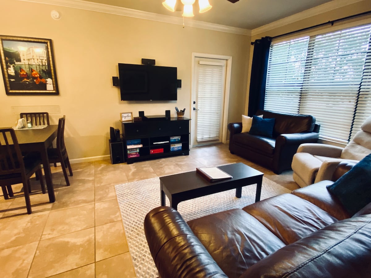 Freshly renovated condo featuring TWO SPACIOUS PRIVATE SUITES, each with its own full bathroom — ideal for families, couples, and business stays. Located in ChampionsGate, 19 minutes from Disney and 30 minutes from Epic Universe and Universal Parks. Only 4 minutes from the Omni Orlando Resort at ChampionsGate, popular for golf, conferences, and special events. Enjoy full access to Tuscana Resort amenities at no extra cost, including a heated pool with conservation views and a relaxing hot tub.