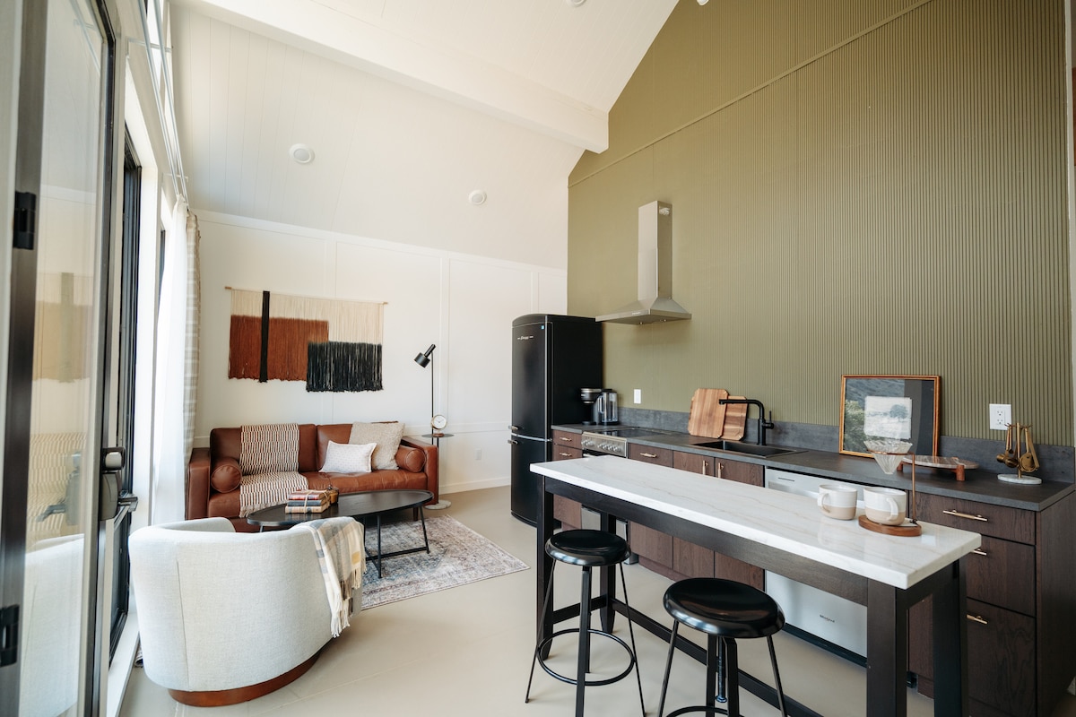 Explore 35+ wooded acres surrounded by national forest in the Rocky Mountains. A wonderful place for couples, friends, & solo travelers to relax or adventure in a modern cabin cut into a rock wall <15 mins from Salida, CO. We designed the Rock Room with 6 floor to ceiling windows and an automatic garage door that opens up to a rock wall and your private covered balcony which overlooks national forest on both sides. We've worked hard designing + curating the Rock Room. Would love to have you.