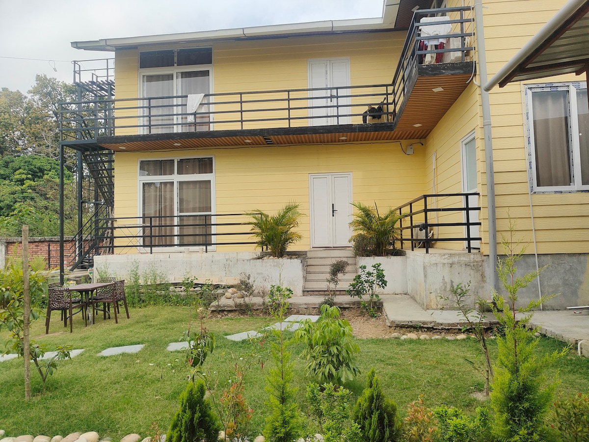 Welcome to our little slice of mountain heaven where, if you spot a dragonfly, coffee is on us! Surrounded by hills, our home has been lovingly designed for comfort and security amidst the breathtaking beauty and serenity of the mountainside. Enjoy long walks, lush greenery and simple pace of the countryside with plush amenities, situated a stone's throw from the main city and en-route to Mussoorie. Nine6fivefour11doublezero44