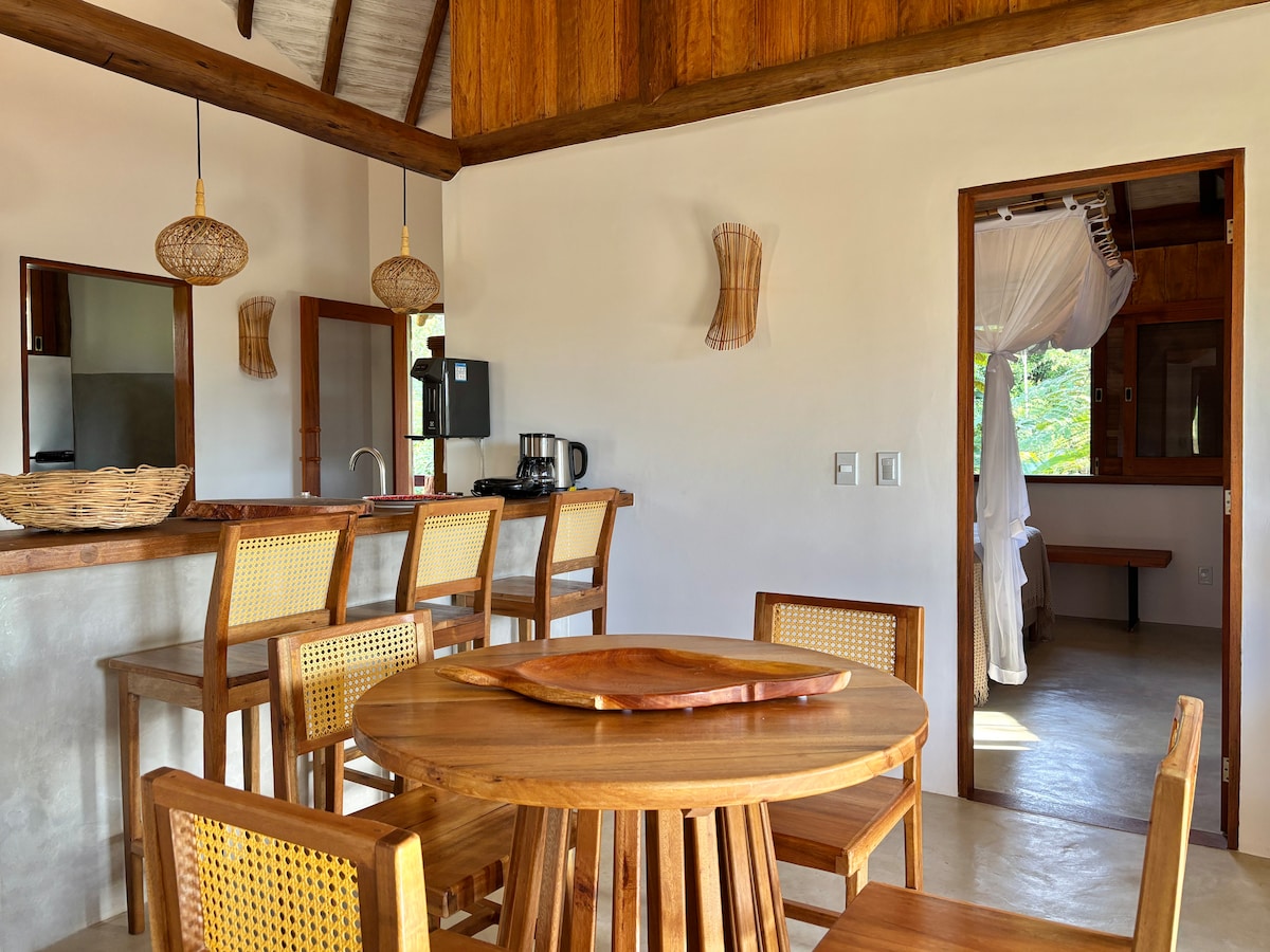 Chalรฉ completo, possui uma cama queen. Podendo colocar um colchรฃo de solteiro. Piscina privativa, cozinha bem equipada, banheiro com closet, ampla varanda com toda a privacidade e cercada de floresta com lindas flores e frutos. Aqui vocรช estarรก em um refรบgio, imerso na natureza e perto da vila e das praias de Serra Grande e prรณximo a Itacarรฉ. ** Temos gatos e cachorros no sรญtio, qualquer questรฃo enviar mensagem.