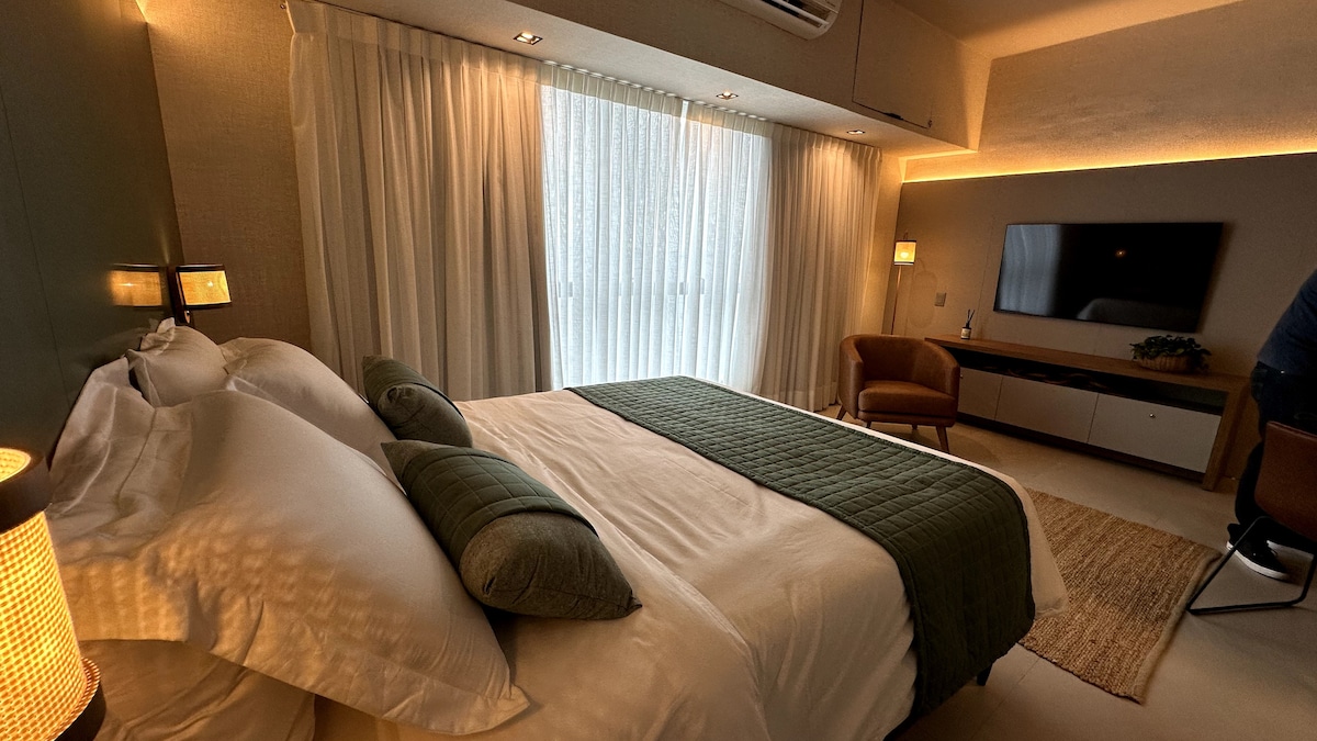 Apartamento moderno e completo, ao lado do Shopping Ponta Negra – você vai a pé! Desfrute da vista incrível para o pôr do sol no Rio Negro, com conforto e praticidade. O apê tem 1 suíte com ar-condicionado, sala climatizada, Wi-Fi, cozinha equipada, varanda com rede e 1 vaga de garagem. O condomínio oferece piscina olímpica, academia, churrasqueira e playground. Ideal para relaxar ou trabalhar na melhor localização de Manaus.
