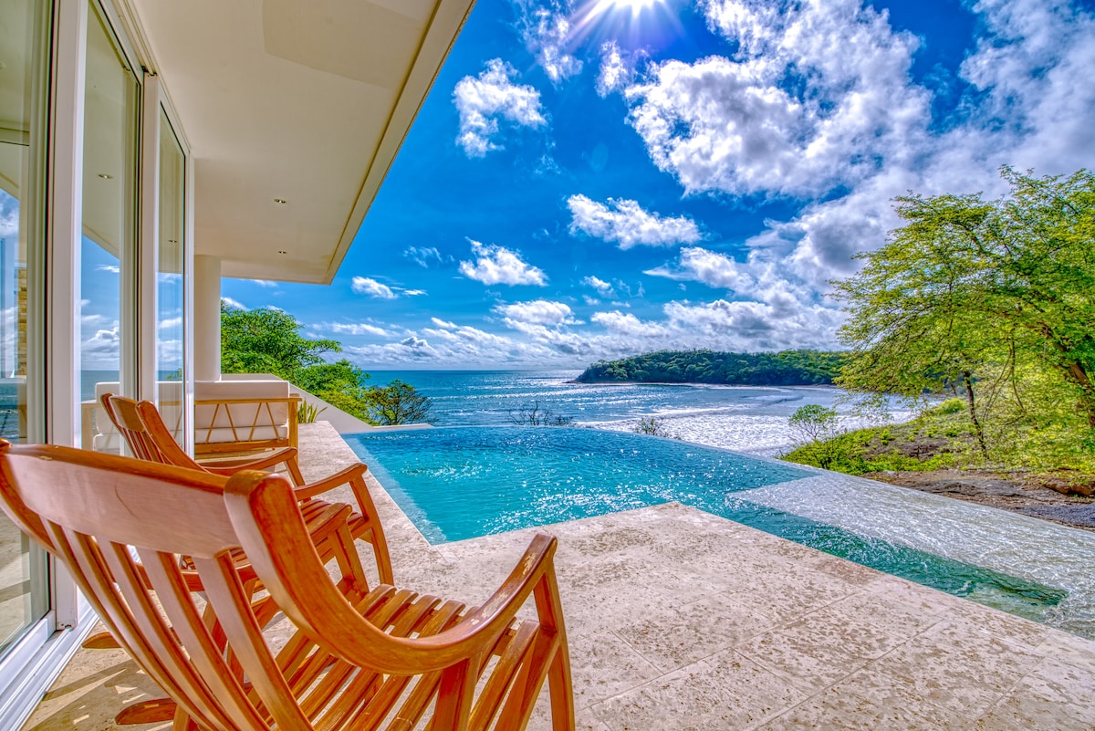 Welcome to Casa Carolina, an exquisite newly-remodeled, beachfront home nestled in the heart of Playa Guasacate that boasts elegance and creativity into a very thoughtful design. Relax and kick back with friends and family at this little slice of peaceful paradise with great surf right in front of the house and several local restaurants nearby. Experience the simple life in style. This remarkable residence creates timeless spaces by blending architectural design with comfort and luxury.
