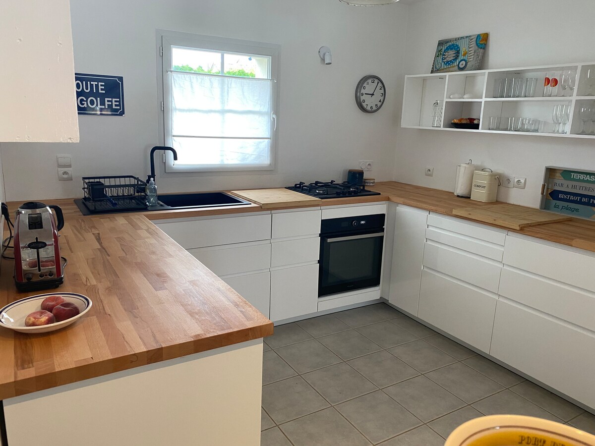 90m² 규모의 신축 1층 주택 / 요청 시 탁월한 편안함과 양질의 서비스를 제공하는 평화로운 동네 / 가족 휴가 / 항구 및 해변(1km)/상점/레스토랑/골프장에서 가깝습니다. 차량 2대용 전용 주차장/4인에게 이상적인 주택/시설이 완비된 주방/거실/40m² 아기자기한 침실 2개(새 침구: 140cm 침대 1개 및 90cm 침대 2개), 침구 제공/도착 시 침구 정돈/4인용 드레싱룸/테라스/전용 울타리 정원.