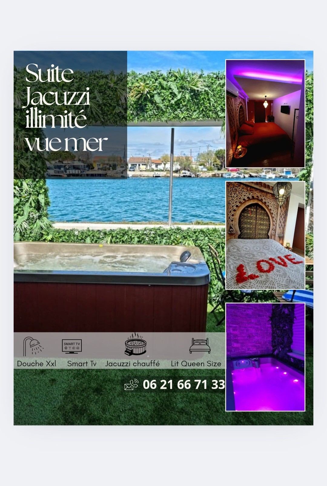Jacuzzi chauffé illimité vue mer : calme & détente