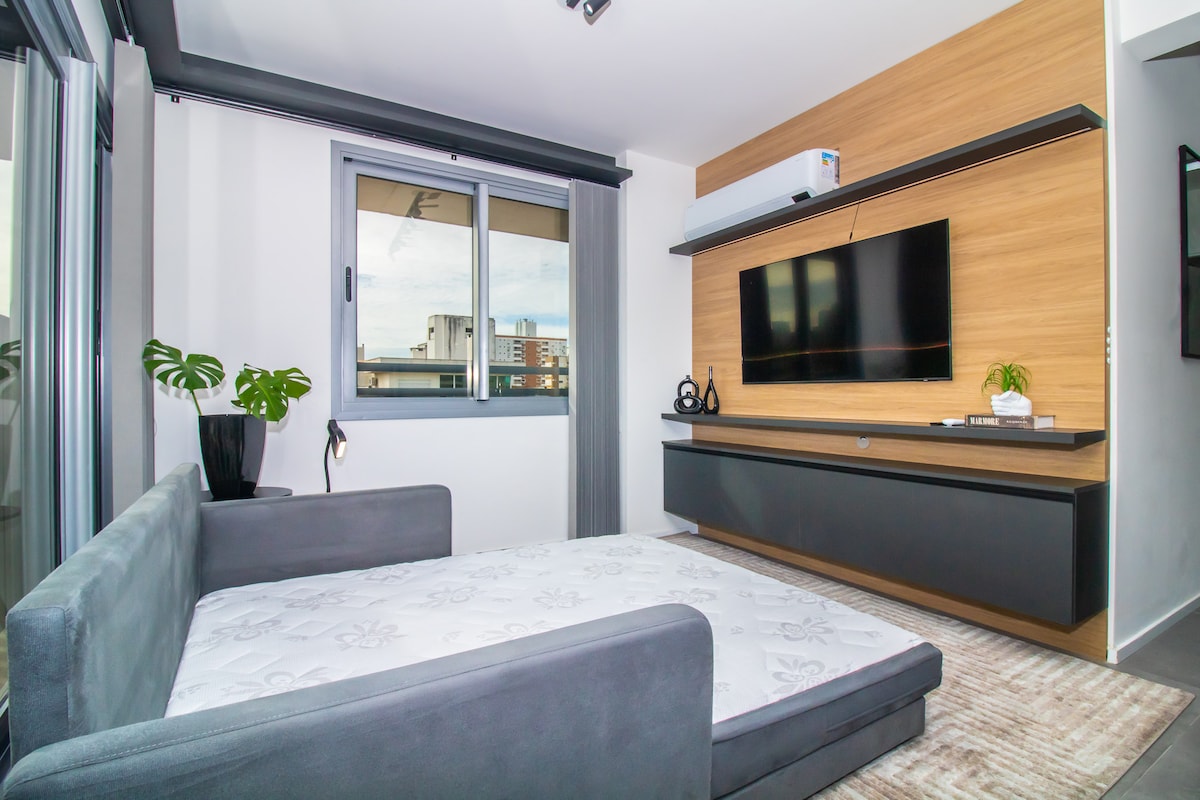 ⭐️ 이제 알렉사와 함께 자동화되었습니다! LED 스마트TV 50인치, 무료 주차 공간, 24시간 컨시어지, 게스트 3명(매트리스), 수영장, 피트니스 센터, 세탁, 옥상 19층, 24시간 공동 작업 공간! 에어프라이어, ⟶ 전자레인지, 토스터기가 있는 주방! • ⟶ PUCRS까지 2분 • 영사관과 시내까지 15분 • 초고속 와이파이 • 엘리베이터 • 에어컨 • 넷플릭스, 유튜브, 디즈니+, 아마존, 글로보플레이 등 • 유연한 체크인 • 반려동물 동반 가능(사전 통보) • 인근 슈퍼마켓! 수건과 침구 포함!:)