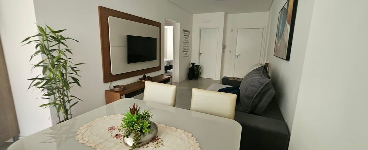 Modern comfort just steps from the sea! This modern apartment offers a practical and elegant stay just 220 m from the beach. It features a queen bed, integrated space with sofa and Smart TV, air conditioning, equipped kitchen, dining area and balcony with city view. The building offers a heated pool and jacuzzi on the rooftop, gym and game room. Close to Hard Rock Cafรฉ and great restaurants. Book now and enjoy special days in Itapema.