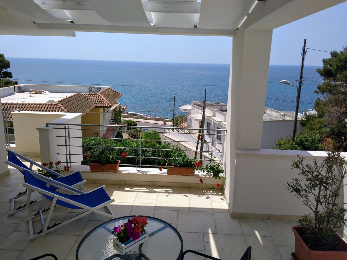 Affacciato sul mare, splendido e nuovissimo attico con meravigliosa vista sullo Jonio e sul bellissimo lungomare. Dotato di due ampi terrazzi panoramici, dai quali si possono godere fantastici tramonti. Completamente indipendente, collocato sulla litoranea tra Santa Maria e Santa Caterina, in zona residenziale tranquilla. L'attico, completamente climatizzato, รจ dotato di ingresso, soggiorno con angolo cottura, camera, bagno con box doccia. Doccia anche all'aperto, Wi-Fi illimitato.