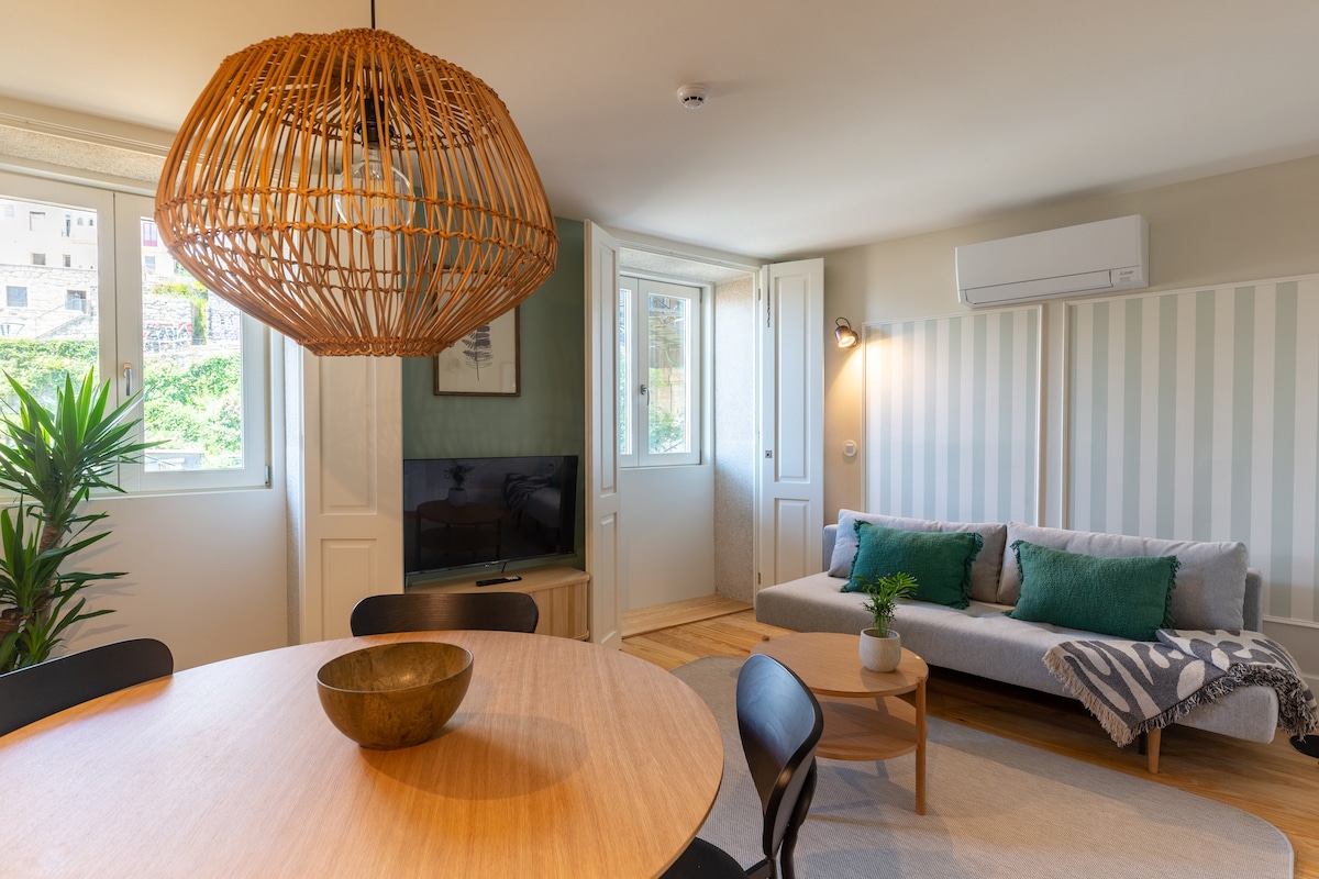 이 아파트는 1층에 위치하고 있으며, 성인 4명을 편안하게 수용할 수 있으며, 두 개의 침실에서 정원과 도룬스 1세 다리를 바라볼 수 있습니다. 루이스 1세 다리, 욕실, 거실 및 완비된 주방, 도루 강, 포르투 역사 지구 및 빌라 노바 데 가이아의 발코니에서 포르투 와인 한 잔과 함께 햇살과 멋진 전망을 즐길 수 있습니다. 주변 전망을 감상하고 즐기기 위해 숙소에는 선택적으로 텔레비전이 없고 무선 인터넷이 제공됩니다.