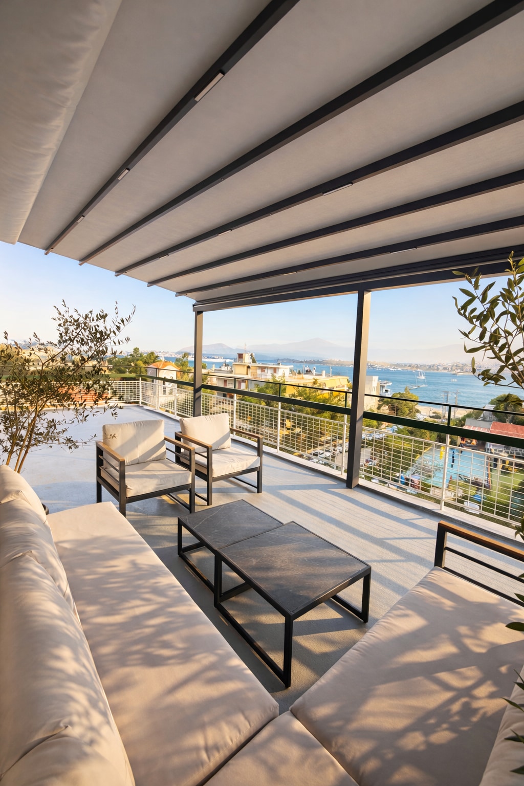Our newly renovated holiday 45m2 apartment is stylish, minimal yet cozy to make you feel right at home. A haven of white and palest grey, the apartment is filled with natural light throughout the day. Our private 100m2 terrace will give you all the serenity and tranquility you need when on vacation by enjoying the stunning view of Vouliagmeni's Bay. Close to beaches, ski school, tennis court, basketball court, hotels, restaurants, forest, parks, 30' from Athens Centre, 30' from Athens Airport.