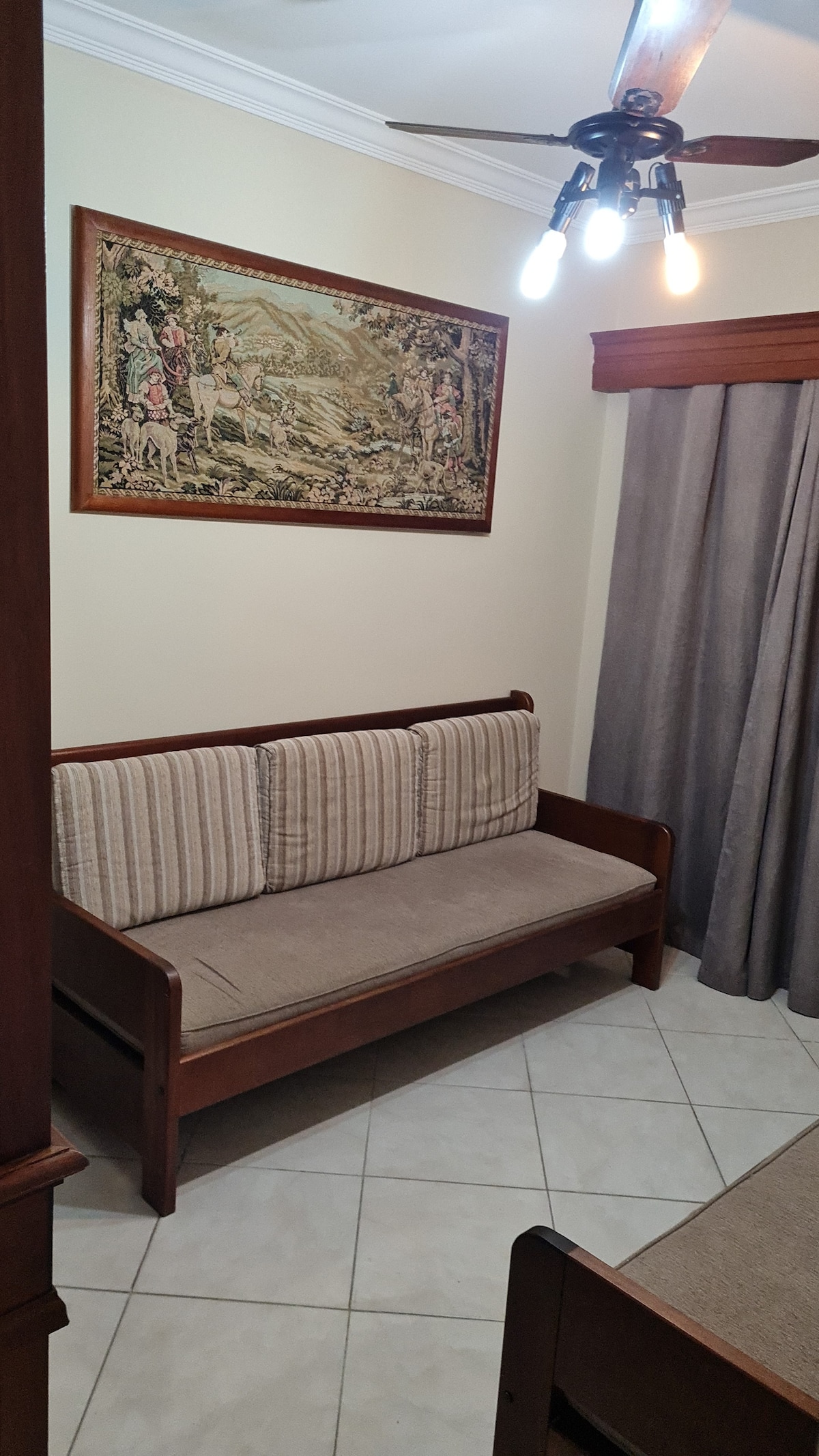 Tem dois quartos, sendo um deles uma suíte. Na suíte tem uma cama de casal e no outro uma beliche e uma cama de solteiro. Dois banheiros. Rede de proteção em todas as janelas. Wi-Fi potente, TV Smart, TV à cabo. Fica a 150 metros da praia. Duas vagas de garagem. Utensílios para preparar e servir as refeições. Com panela elétrica, cafeteira elétrica de coador e expresso, microondas, liquidificador, sanduicheira, chaleira elétrica, purificador de água, cadeiras de praia. Ar condicionado