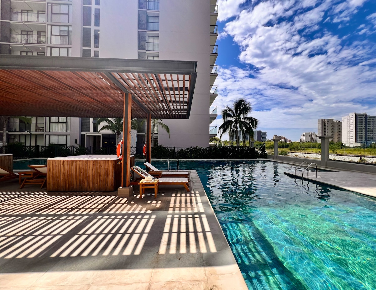 Descubre un espacio moderno y acogedor diseñado para el descanso y la comodidad. Este loft te ofrece una experiencia única con vista al mar, a solo pasos de la playa. Disfruta de amenidades premium como Wi-Fi de alta velocidad, aire acondicionado, piscina, jacuzzi, parque infantil, zona de lavandería, sala de negocios y co-working, gimnasio y parqueadero privado. Ideal para familias, parejas o amigos que buscan comodidad con un toque de lujo. Reserva y disfruta unas vacaciones inolvidables!