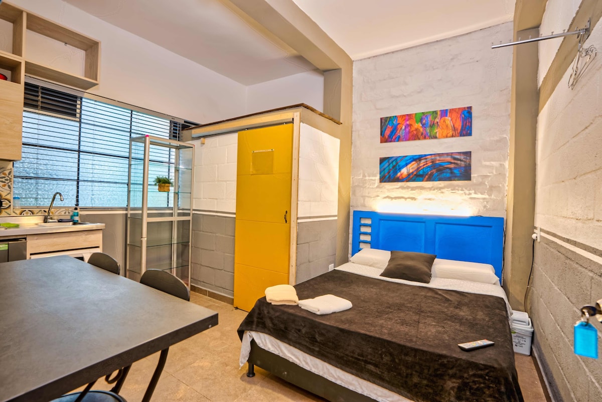 💰Somos EXCLUSIVOS en Medellín, NO cobramos la comisión de Airbnb. 🌴 En el Corazón de la Ciudad 🌴 Alojamiento en Bomboná, Medellín. - Cocina equipada 🍳 Nevera, microondas, estufa eléctrica. -Utensilios básicos cocina. - Ducha eléctrica 🚿 - TV 📺 - Ventilador ❄️ - Cama 1.40m 🛏️ con almohadas ortopédicas y gel - Barra y 2 sillas 🍹 -Servicio de Lavanderia (costo extra) - Internet 500M 📶 de fibra óptica Reserva ahora y experimenta Medellín en el corazón de la ciudad 💚
