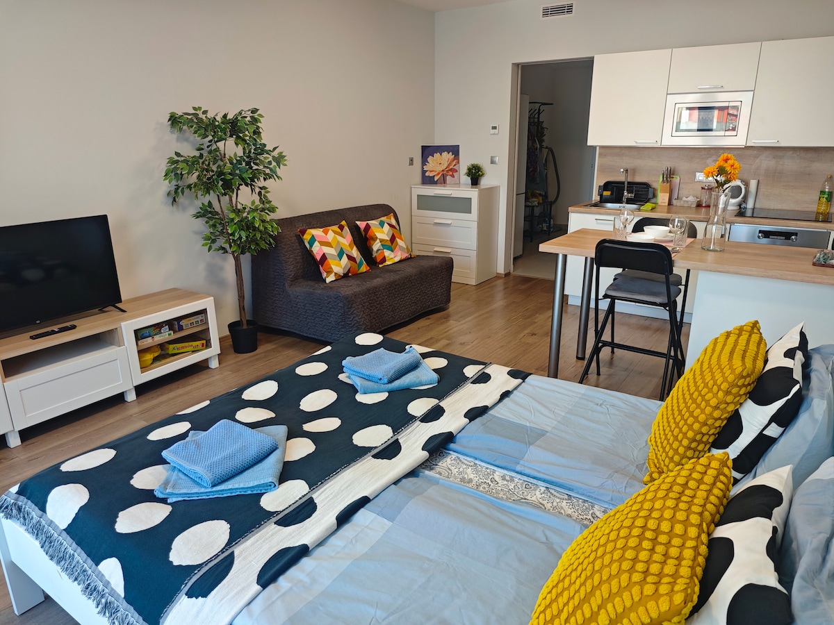 하기보르 단지의 디자이너 스튜디오에서 현대적인 생활의 매력을 발견하세요! 시설이 완비된 주방, 네스프레소 커피 메이커, 편안한 책 또는 넷플릭스 저녁 시간을 즐기며 집과 같은 편안함을 누리세요. 발코니, 차고 주차장, 초고속 인터넷을 갖춘 이곳은 북적이는 도시에서 오아시스 같은 고요함을 선사합니다. 녹색선 젤리프스케호 지하철역에서 도보로 가까운 거리에 있어 역사적인 도심에서 몇 분 거리에 있습니다. 도시 모험을 즐기기에 완벽한 숙소입니다!:-)