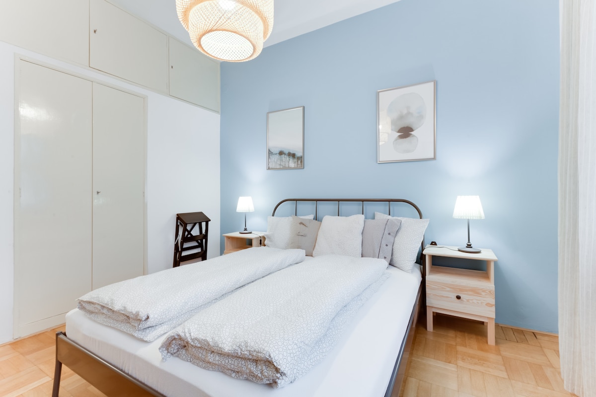 Have breakfast at a design-conscious table in a luminous kitchen with knotty wood floors and minimalist flourishes. The space with 95sqm, tall windows flood a vibrant living area in natural light where a modern sofa offers the perfect spot to curl up with a good book. Moreover, at night you can enjoy every bit of your sleep as the place is very quiet, despite its very central location. I hope that you will love my home as I do and will make your stay a delightful experience.