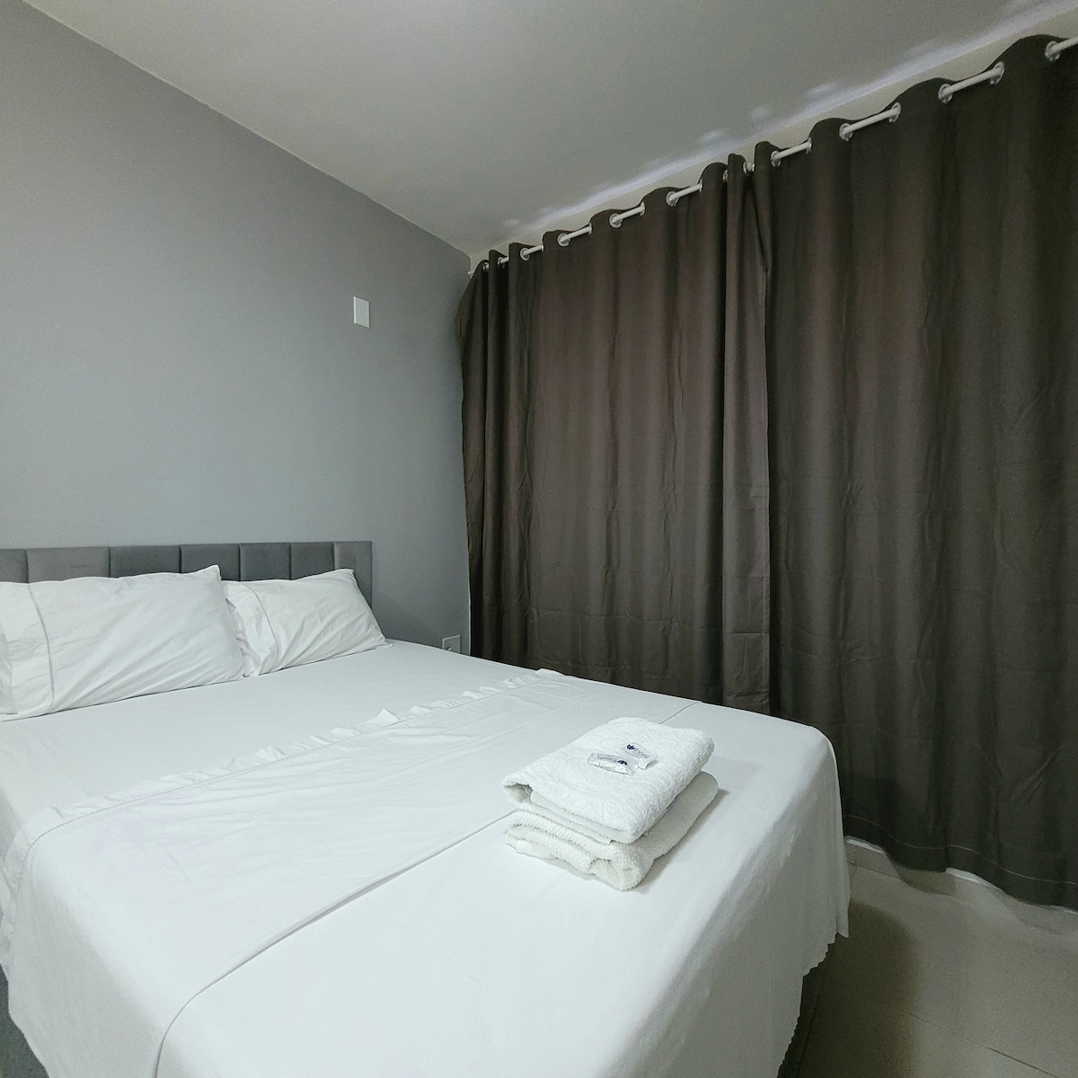 Hospede-se no coração de Guarapari! Nosso estúdio moderno e totalmente climatizado está no 5º andar de um edifício com dois elevadores e portaria 24h, garantindo conforto e segurança. A apenas 200 metros da Praia das Castanheiras, você aproveita o melhor da cidade com praticidade. O espaço conta com varanda externa, ideal para relaxar após um dia de praia. Não possui vaga de garagem, mas há opções próximas.