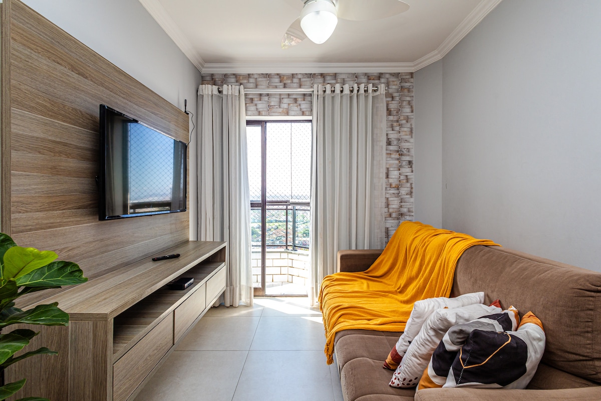 도보로 모든 것을📍 하세요! * 50m do Carrefour, Extra, pharmacies, fair and numerous bars, restaurants, McDonald's, Habib's and Av. Costa e Silva. 🌊 VISTA DESLUMBRANTE- Beira Mar - Guilhermina Beach! 🕗 체크인 및 체크아웃의 유연성, 수수료 없음 및 가능성. 🗝️ 셀프 체크인 📶 와이파이 광섬유 - 400메가. 📺 SmartTv-50 Pol. 바비큐 🍖 키트. 발코니 🪟 유리. 🛌 침구 - 면 100%