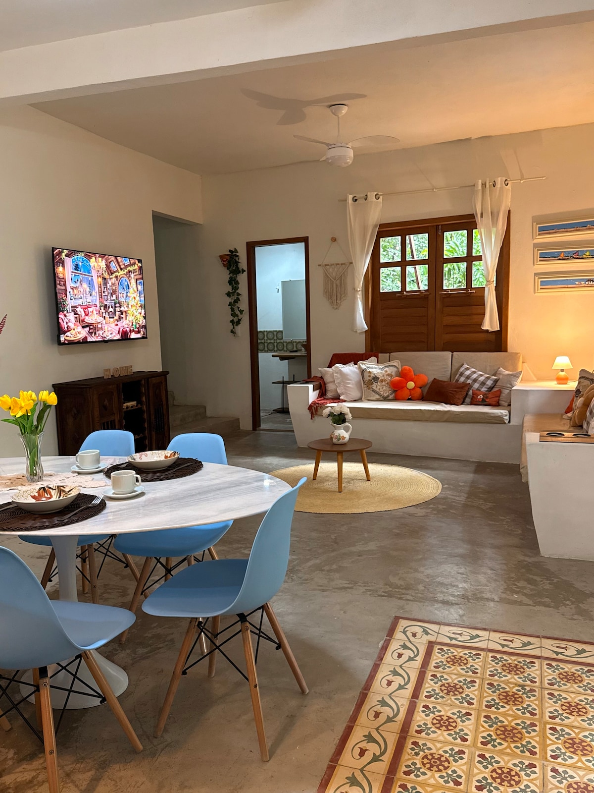 A Casa Sol é uma aconchegante kitnet frente mar, que fica no melhor ponto da praia de Caraíva: onde formam as piscinas naturais em maré baixa! Fica no andar superior e por isso conta com uma vista incrível para o mar onde é possível ver o nascer do sol (e da lua cheia) relaxando na cama ou na varanda! Ficamos localizados na Aldeia Xandó, uns 15 a 20 minutos da vila de Caraíva. Estamos a poucos metros de ótimos quiosques como Caramuru, Manga Rosa e Coral praia bar.