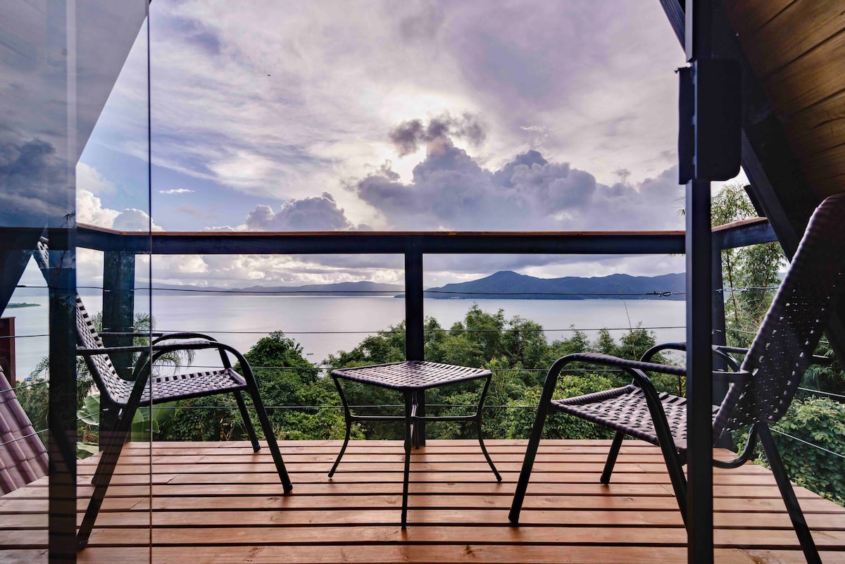 O chalé é totalmente equipado para uma estadia confortável e inesquecível: Quarto • Quarto aconchegante com sacada e vista para o pôr do sol Sala • Sofá confortável para relaxar depois da praia • Smart TV • Ar-condicionado Cozinha completa • Utensílios para preparar refeições completas Banheiro • Chuveiro com aquecimento a gás Relaxamento • Banheira de hidromassagem para momentos de descanso a dois À noite, o clima é silencioso com céu estrelado e a brisa suave vinda do mar.