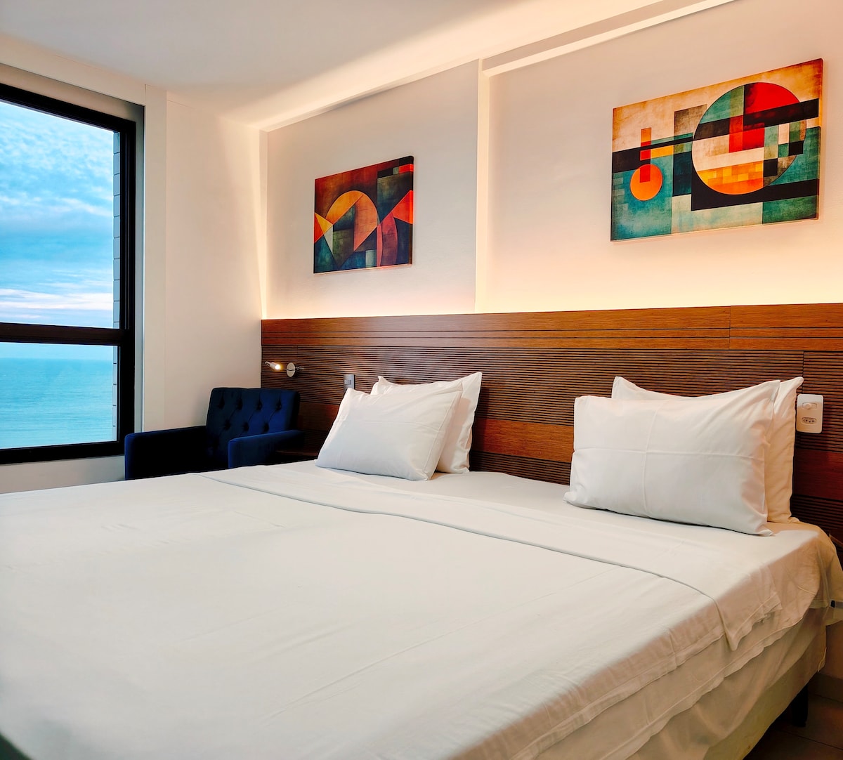 Acorde com uma vista espetacular para o mar no 6º andar do Paradise Flat! Apartamento completo e acolhedor, com cama king, ar-condicionado novo, Wi-Fi veloz, Smart TV e cozinha equipada. Ideal para descansar ou trabalhar com conforto. Piscina, sauna, limpeza inclusa e recepção 24h. Localização privilegiada, perto dos melhores restaurantes e comércios. Viva dias incríveis com praticidade, charme e segurança!